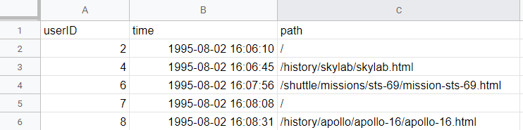 What is that ksc.html item doing first? It would make more sense if the website root (the top-level directory that displays when you first go to a website, which is shown as /) was the most visited path. After doing a little research, you quickly learn that ksc.html is the home page for the Kennedy Space Center in Cape Canaveral—a popular tourist destination. You can deduce that many of the NASA website visitors were probably people who were interested in visiting or watching space shuttle launches. No wonder that page outranks the home page. Ask yourself: If I were a product manager in charge of NASA's website, what would my goals (or KPIs) be? What next steps would this information suggest?