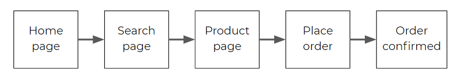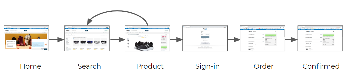 From this visualization, it's pretty obvious what you can expect to happen when someone visits the site—from the initial search all the way to making a purchase. This basic success path is sometimes referred to as the happy path.