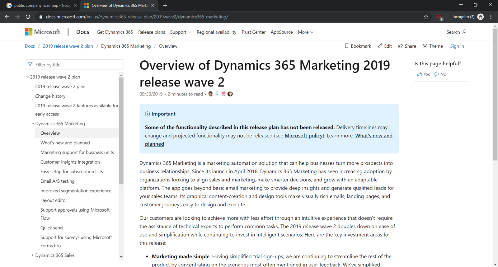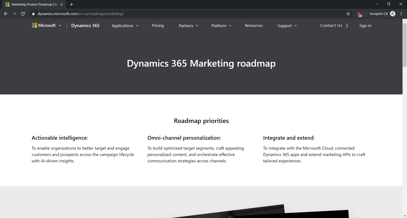 Some products are so complex that they have multiple roadmaps. Microsoft Dynamics 365, a tool for sales teams, breaks their roadmaps apart by the teams and feature areas of the product. This makes it easier for specific users to know how the changes will impact them.