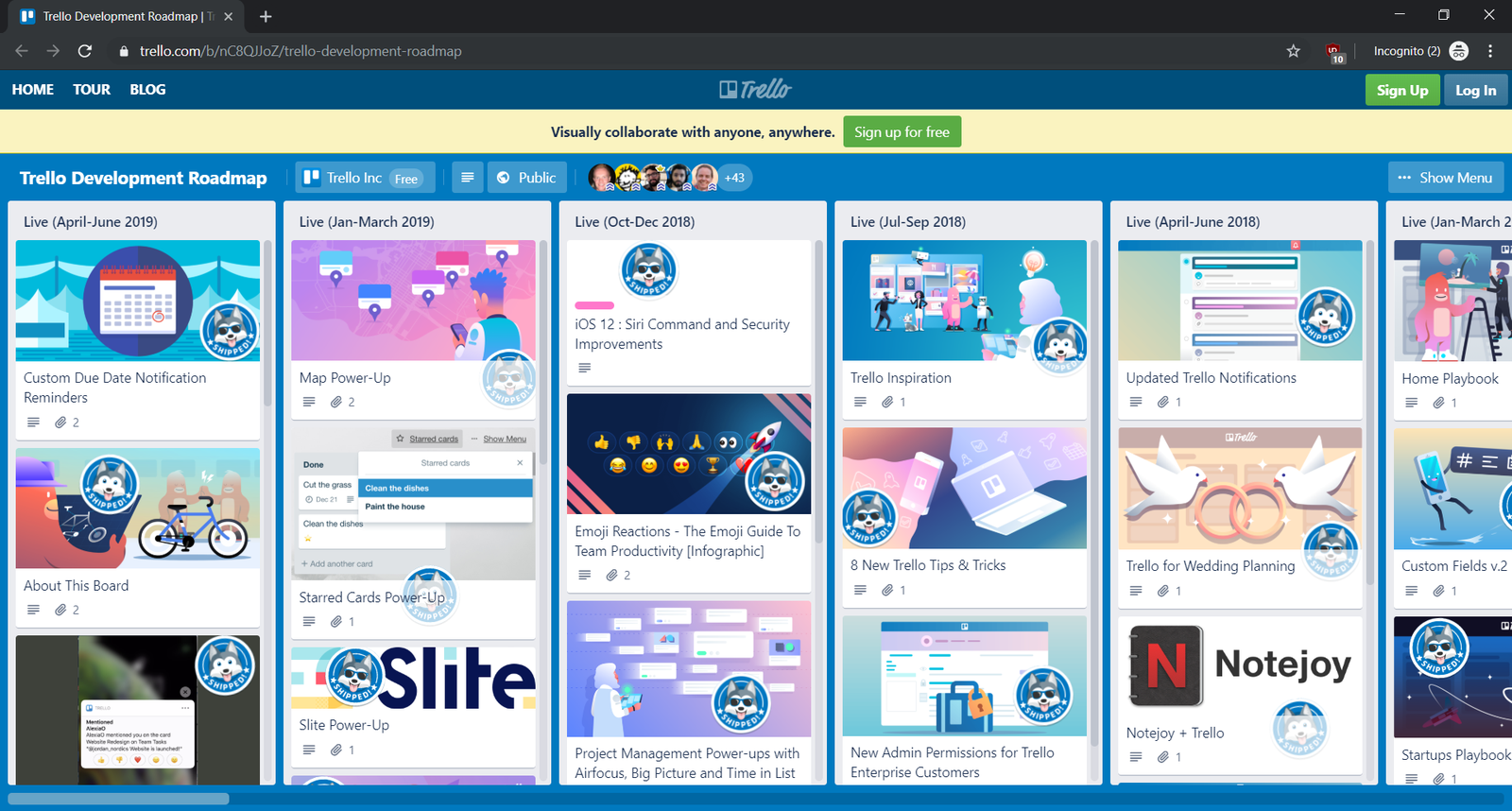 The project management application Trello shares the roadmap for their products in a Trello board. This lets anyone see where they're headed next, and Trello encourages people to comment and participate in the process of helping shape their roadmap. Similarly, Buffer uses Trello for their own public roadmap.