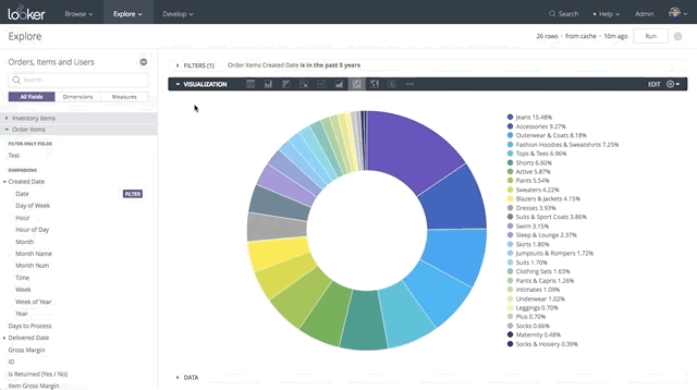 This also makes it easy to create dashboards. Many BI tools will let you save your visualizations onto a single page, so you can easily create a dashboard containing the most useful information without ever worrying about the details of how it all works. Some tools can even create interactive visualizations, where you can drill down in charts. You can see this in action in another Looker Demo embedded below: