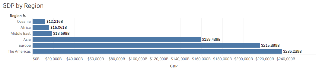 Because the title already indicates that the bars represent regions, you can hide the header. Right-click the word Region above the bar chart. Then, select Hide Field Labels for Columns as seen below: