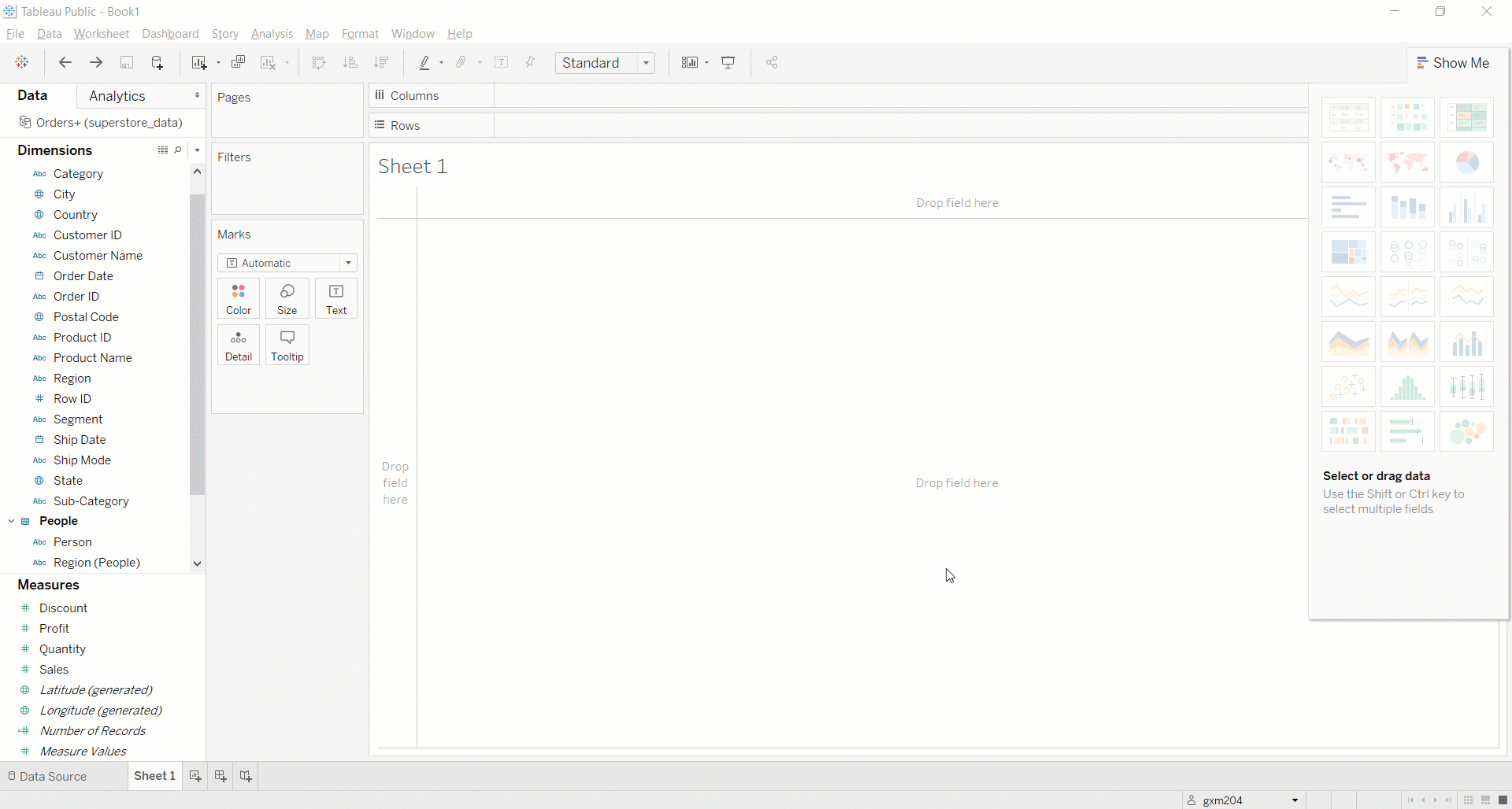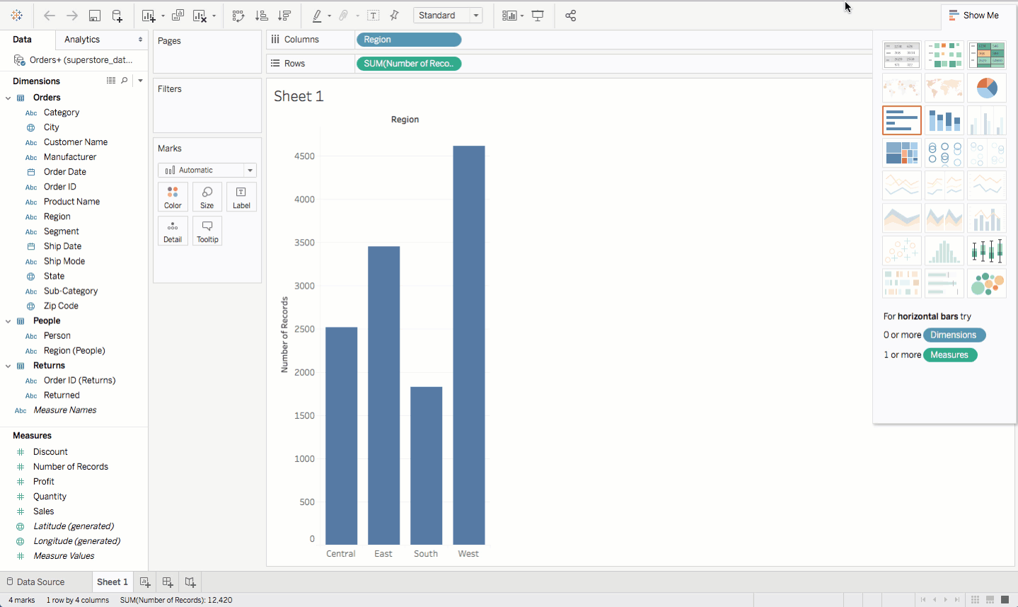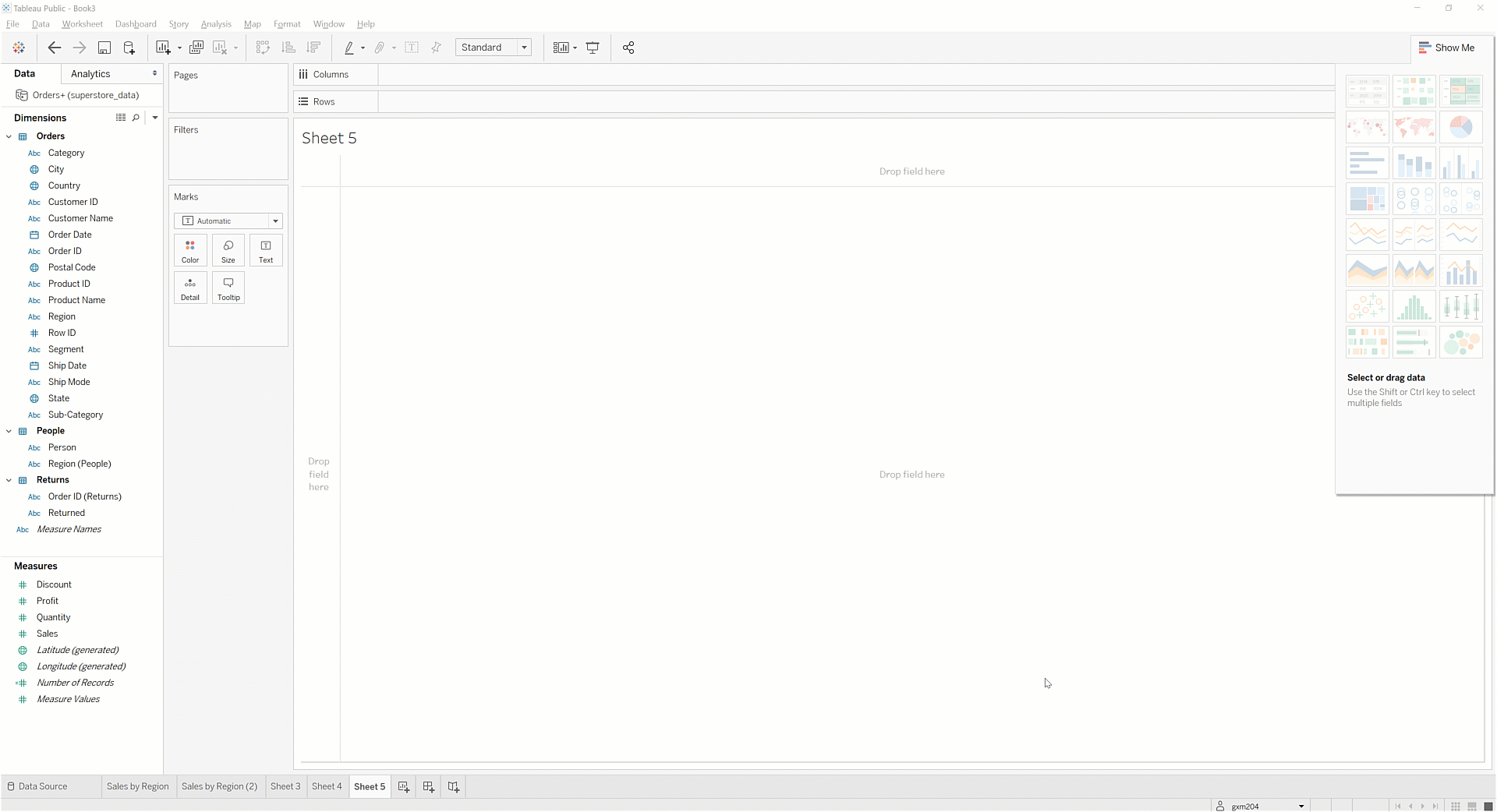 Tableau is well-known not just for its ability to help you do data analysis, but also for its powers of data visualization. In the previous checkpoint, you connected to the Superstore dataset. Now, you'll be using that dataset to build out your first Tableau visualizations.