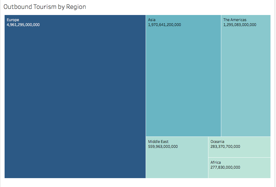 Create a treemap that displays outbound tourism data by region and contains labels for each region. Your chart should look like the one below: