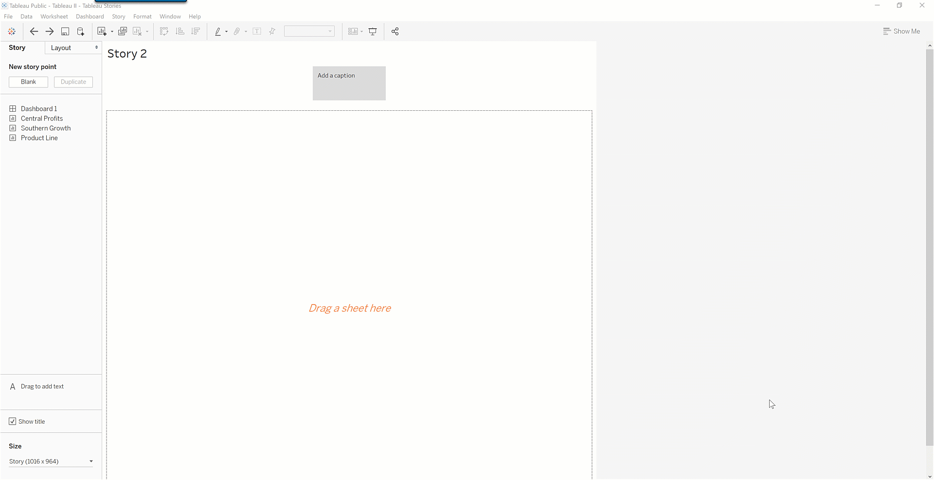 The title of the sheet name is also the title of your story. You can change it by right-clicking the sheet tab and selecting Rename Sheet. If you're using Tableau Desktop, you can also rename a story by double-clicking the title.