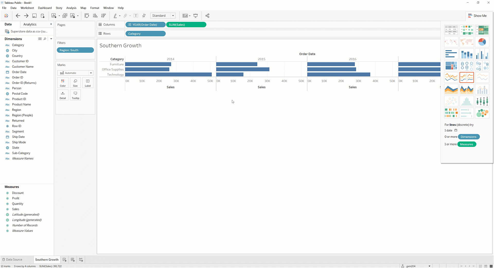 Create a new worksheet, and call it Southern Growth.