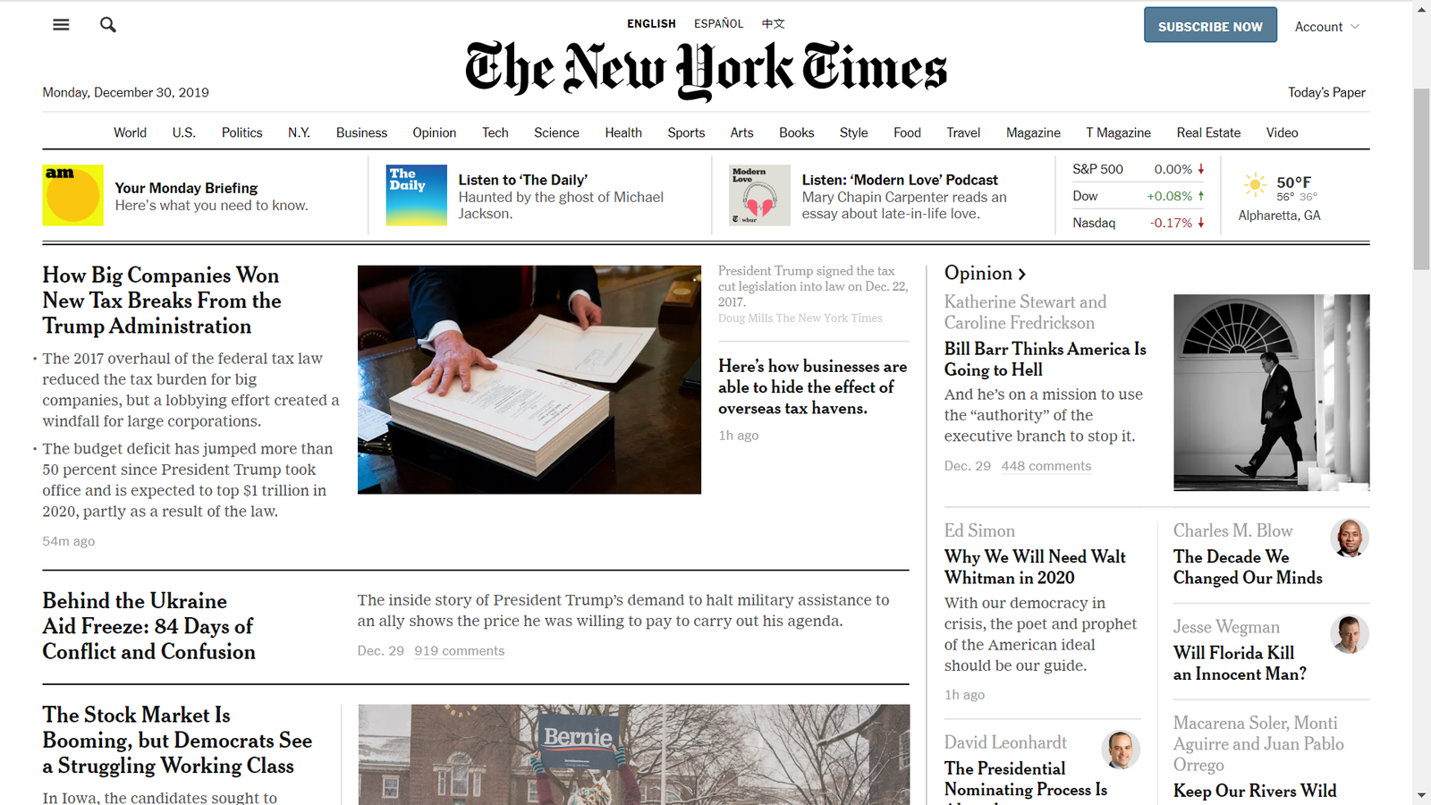 The New York Times exemplifies the fold in a very interesting way. It uses the concept to highlight what it perceives as headlines, while the less urgent content requires a scroll: