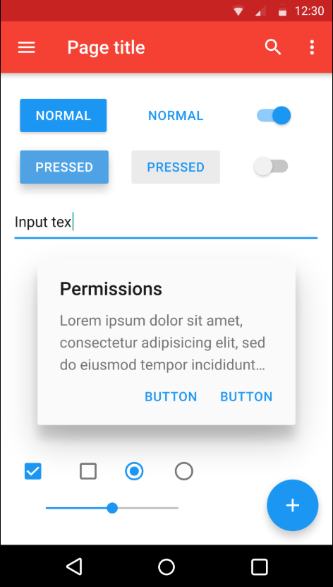 Google's Material Design is an example that shows text, buttons, and other conventions used in many Android applications:
