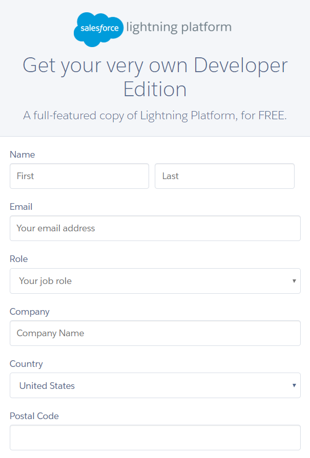 The Salesforce developer form above has lots of fields stacked vertically for easy filling in. Note that all the fields are the full width, which gives the form a consistent look and feel.