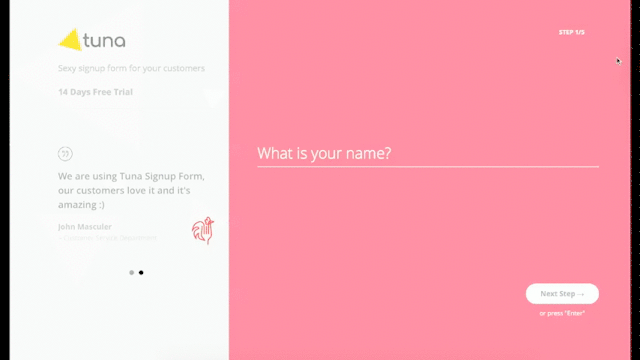 Notice how in the sign-up form below, each page only asks for one piece of information at a time. This is a very simple example, but even with just two or three fields per page, this form wizard is easy to understand and quick to complete: