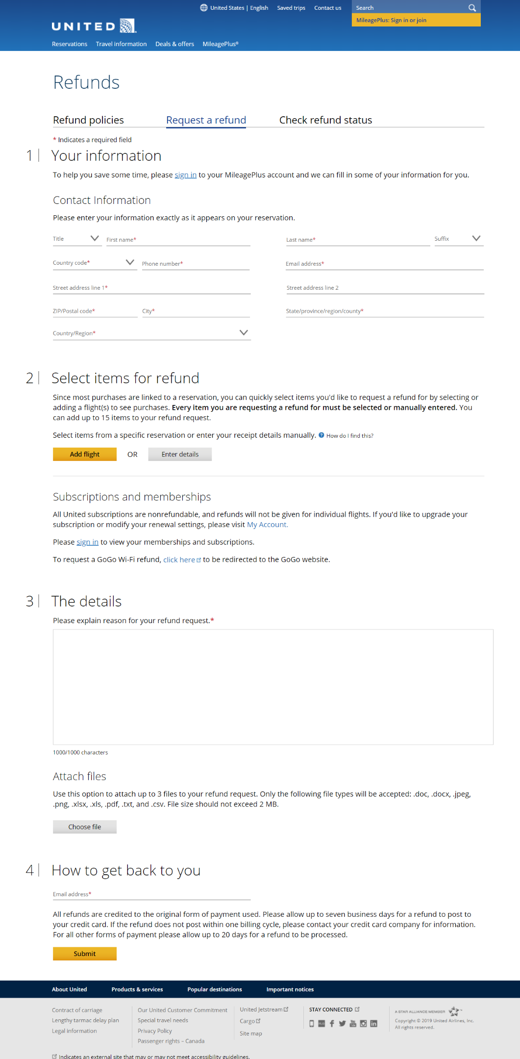 Imagine you're creating a form for requesting refunds for United. How long should you make the box where the customer enters the description of their support issue? What other pieces of information should they provide? And how much space should each field take up?